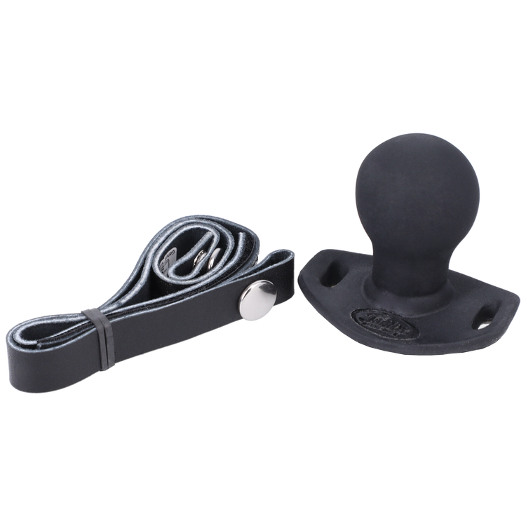 The leather straps have velcro closures for maximum adjustability and snap off to allow the gag to be completely hygienically cleaned. The straps allow for maximum adjustment for head size and ease of fitting.